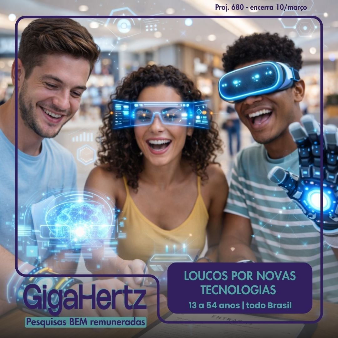 Early Adopter, essa é para você! Inscreva-se para essa pesquisa bem remunerada e divertida, online em todo o Brasil.